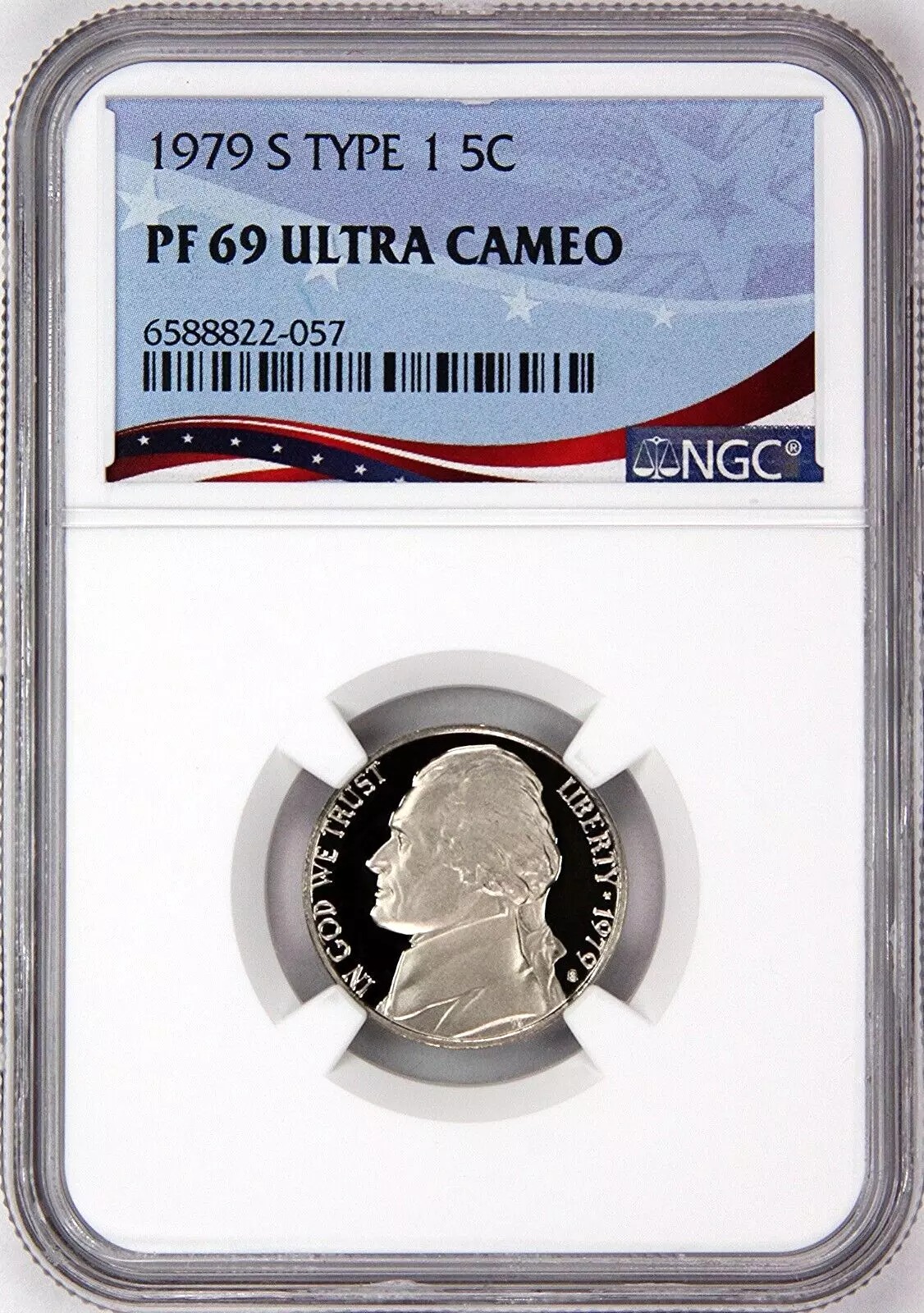 1979-S TYPE 1 Proof Jefferson Nickel, Graded PF69UC NGC * OSR Patriotic Label