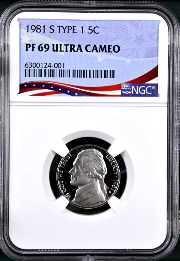1981-S TYPE 1 Proof Jefferson Nickel, Graded PF69UC NGC * OSR Patriotic Label