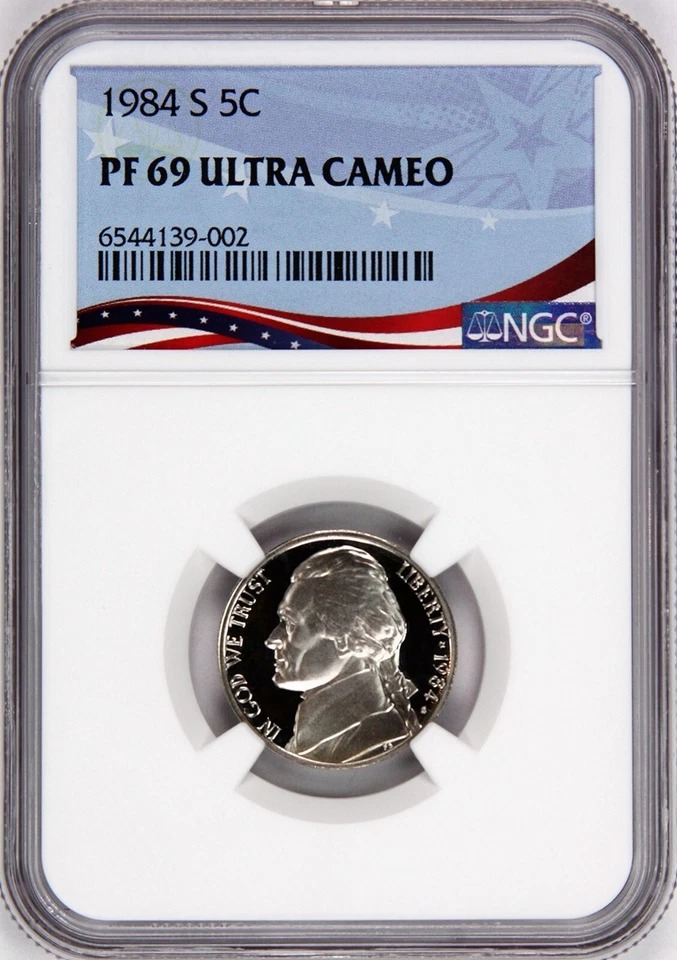 1984-S Proof Jefferson Nickel, Graded PF69UC NGC * OSR Sales Patriotic Label