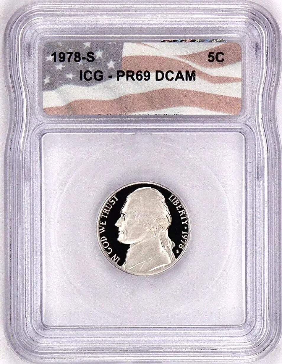 1978-S Proof Jefferson Nickel, Graded PR69 DCAM – ICG