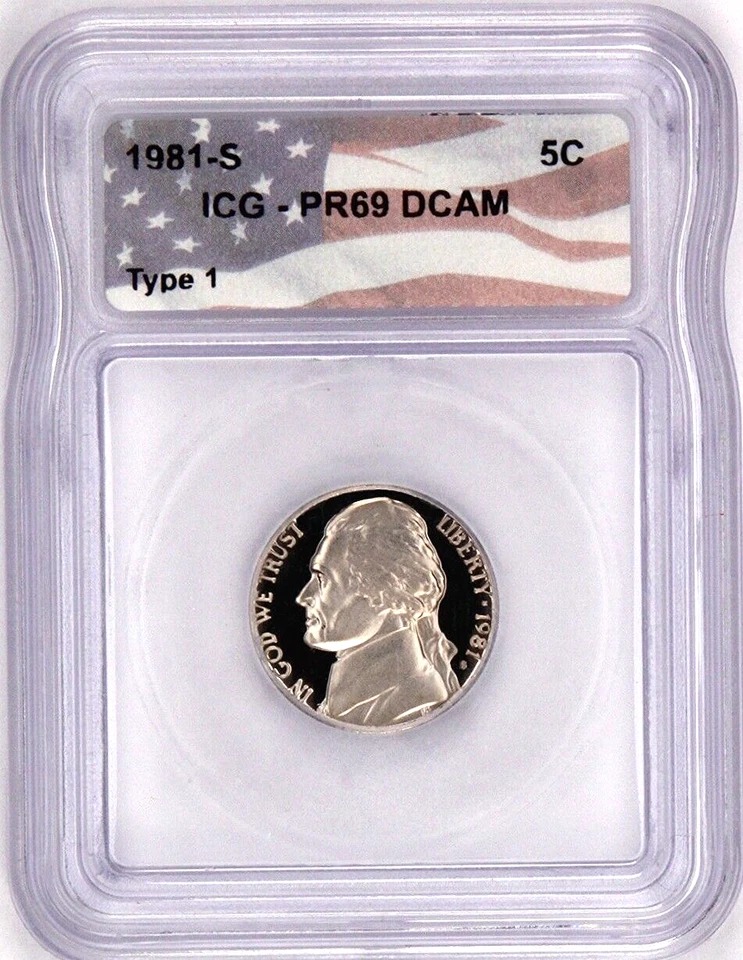 / 1981-S TYPE 1 – Proof Jefferson Nickel, Graded PR69 DCAM – ICG