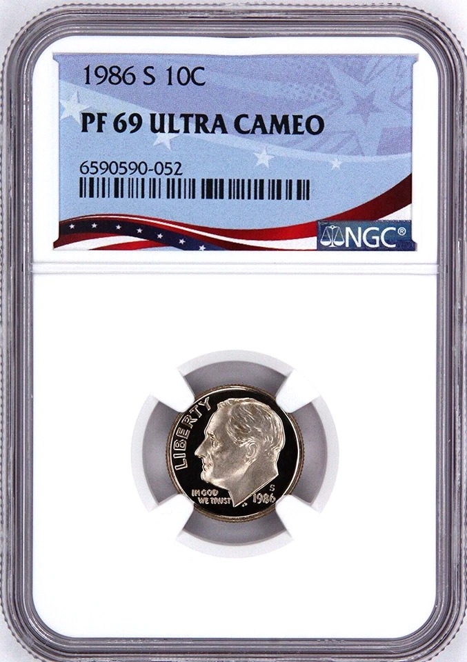 1986 S Proof Roosevelt Dime, Graded PF69UC NGC * OSR Patriotic Exclusive Label quantity