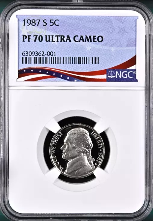 / 1987-S Proof Jefferson Nickel, Graded PF70UC by NGC * Extremely Low Population!