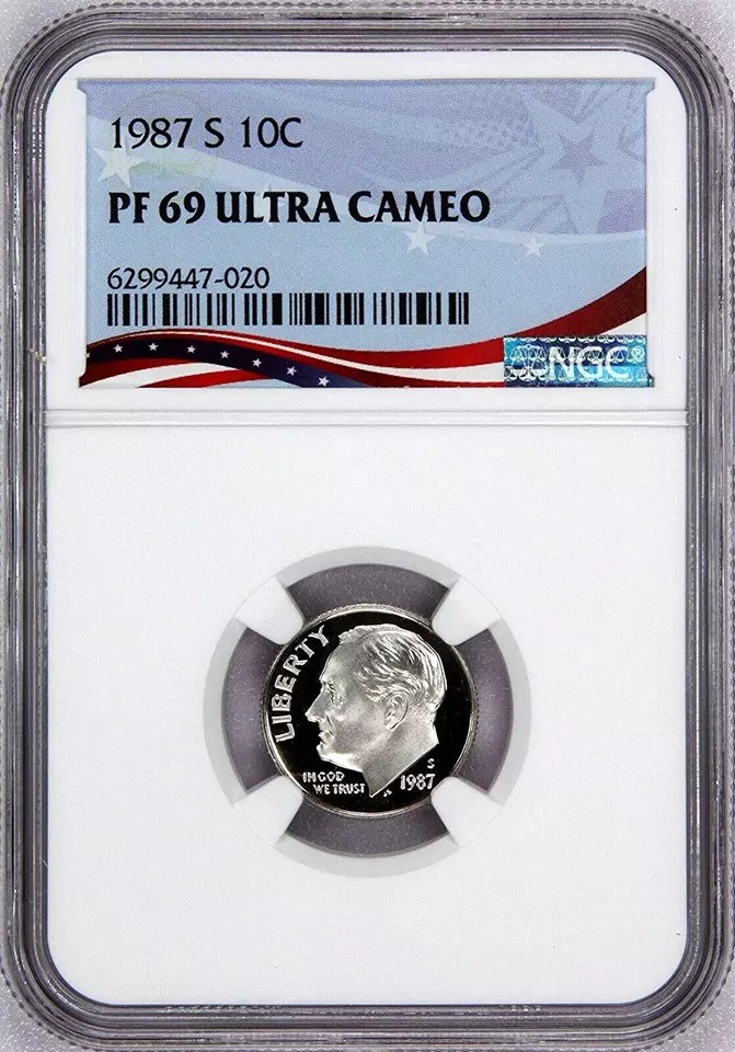 1987-S Proof Roosevelt Dime, Graded PF69UC NGC * OSR Patriotic Exclusive Label quantity