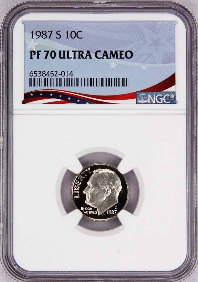 1987-S Proof Roosevelt Dime, Graded PF70UC by NGC * Registry Coin quantity