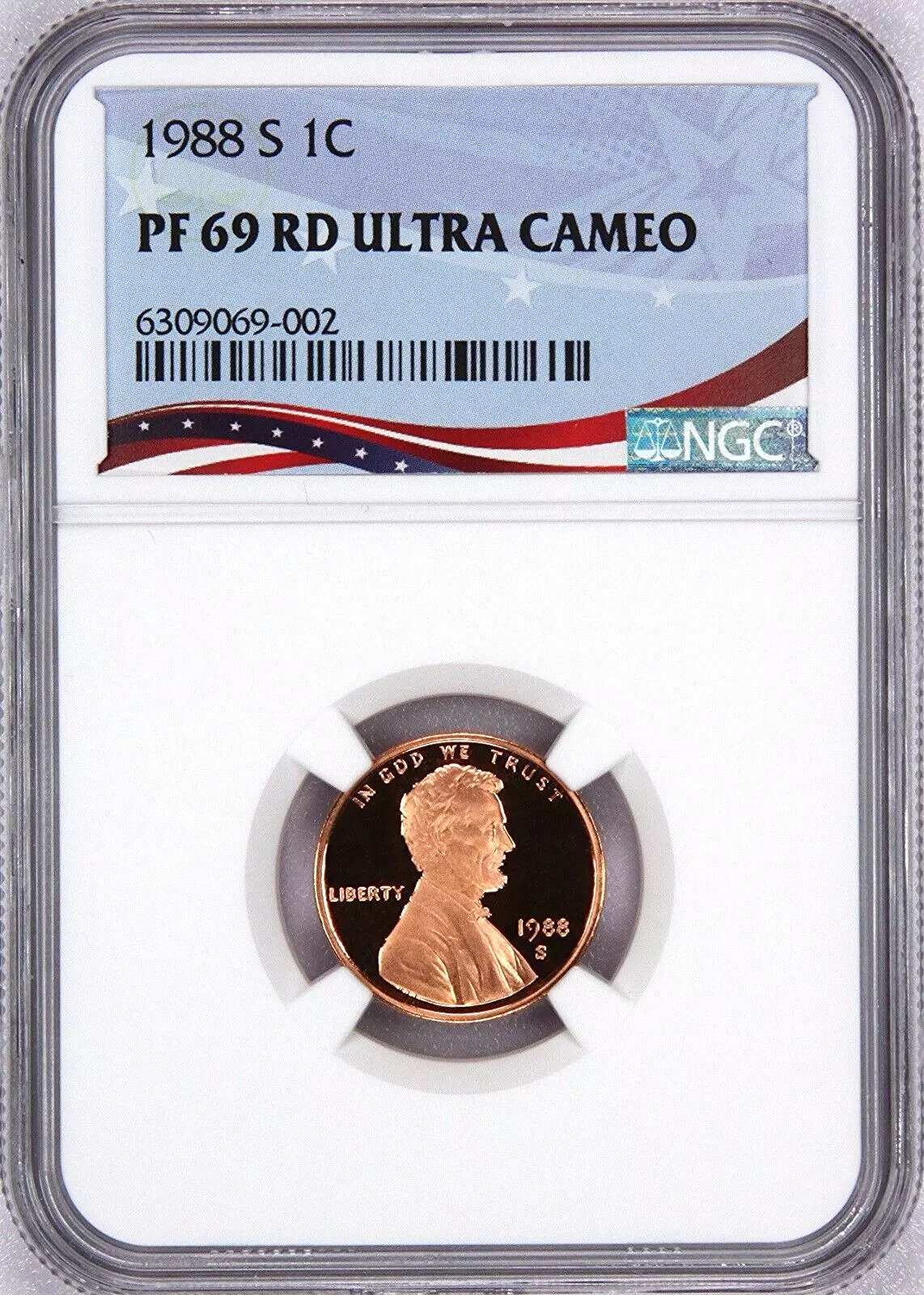 / 1988-S Lincoln Cent Graded PF69RD Ultra Cameo by NGC