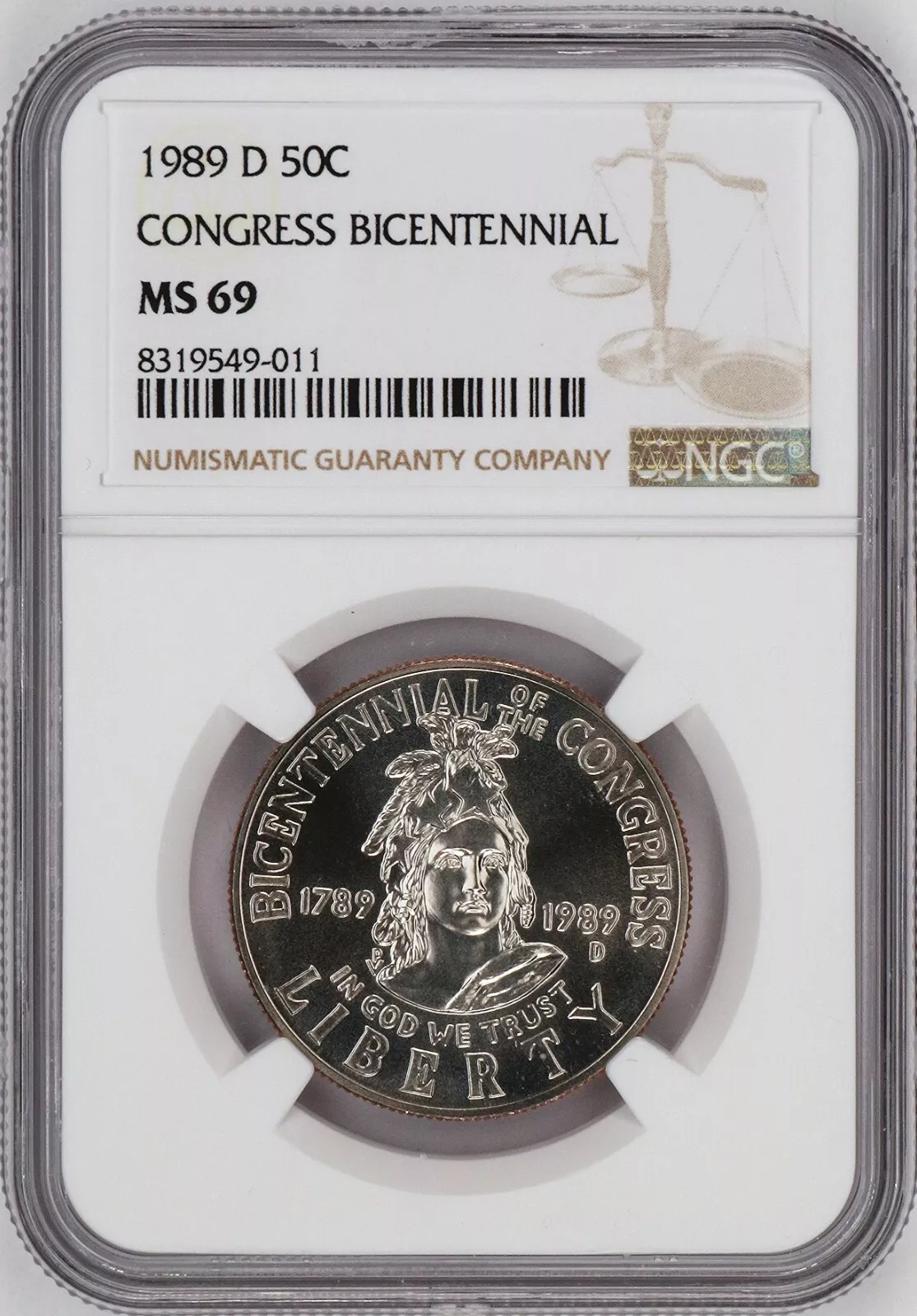 / 1989 D Congress Bicentennial Half Dollar Graded MS 69 by NGC