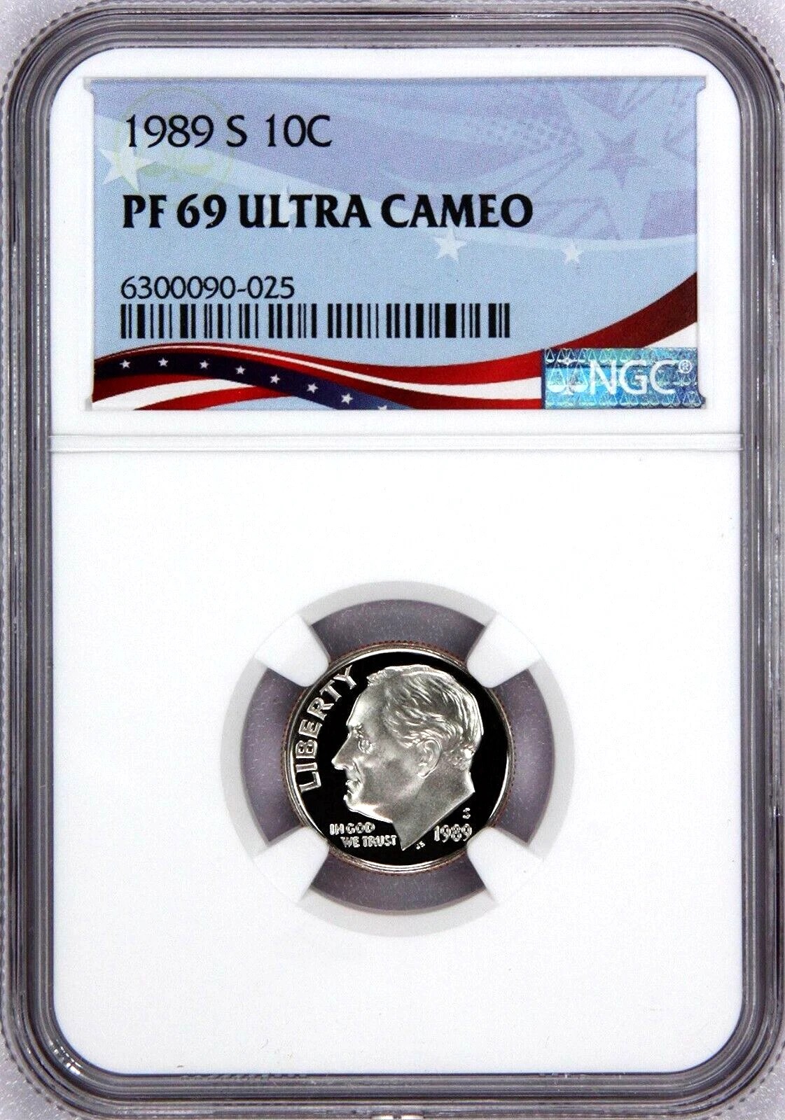 1989-S Proof Roosevelt Dime, Graded PF69UC NGC * OSR Patriotic Exclusive Label quantity