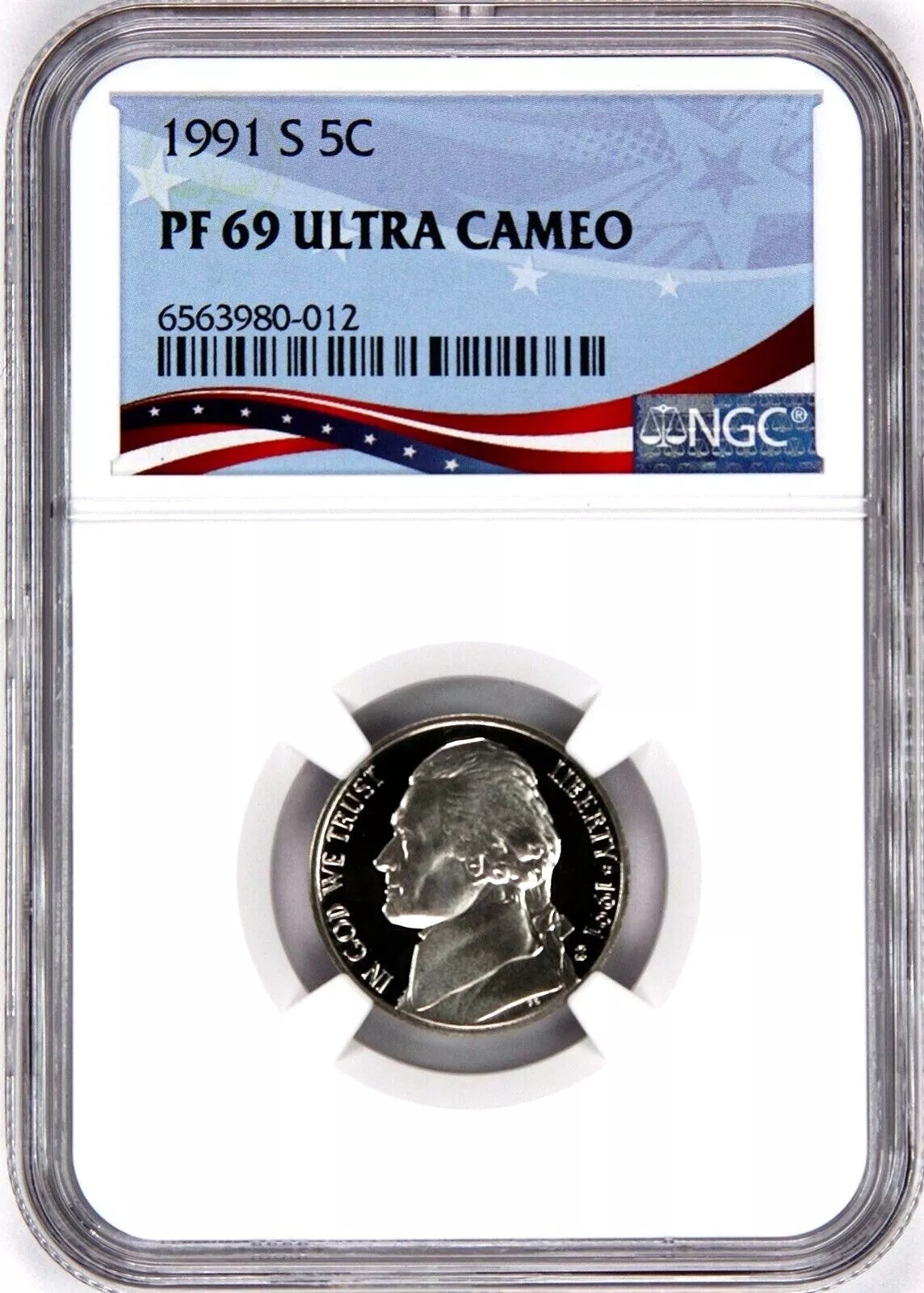 / 1991-S Proof Jefferson Nickel, Graded PF69UC NGC * OSR Sales Patriotic Label