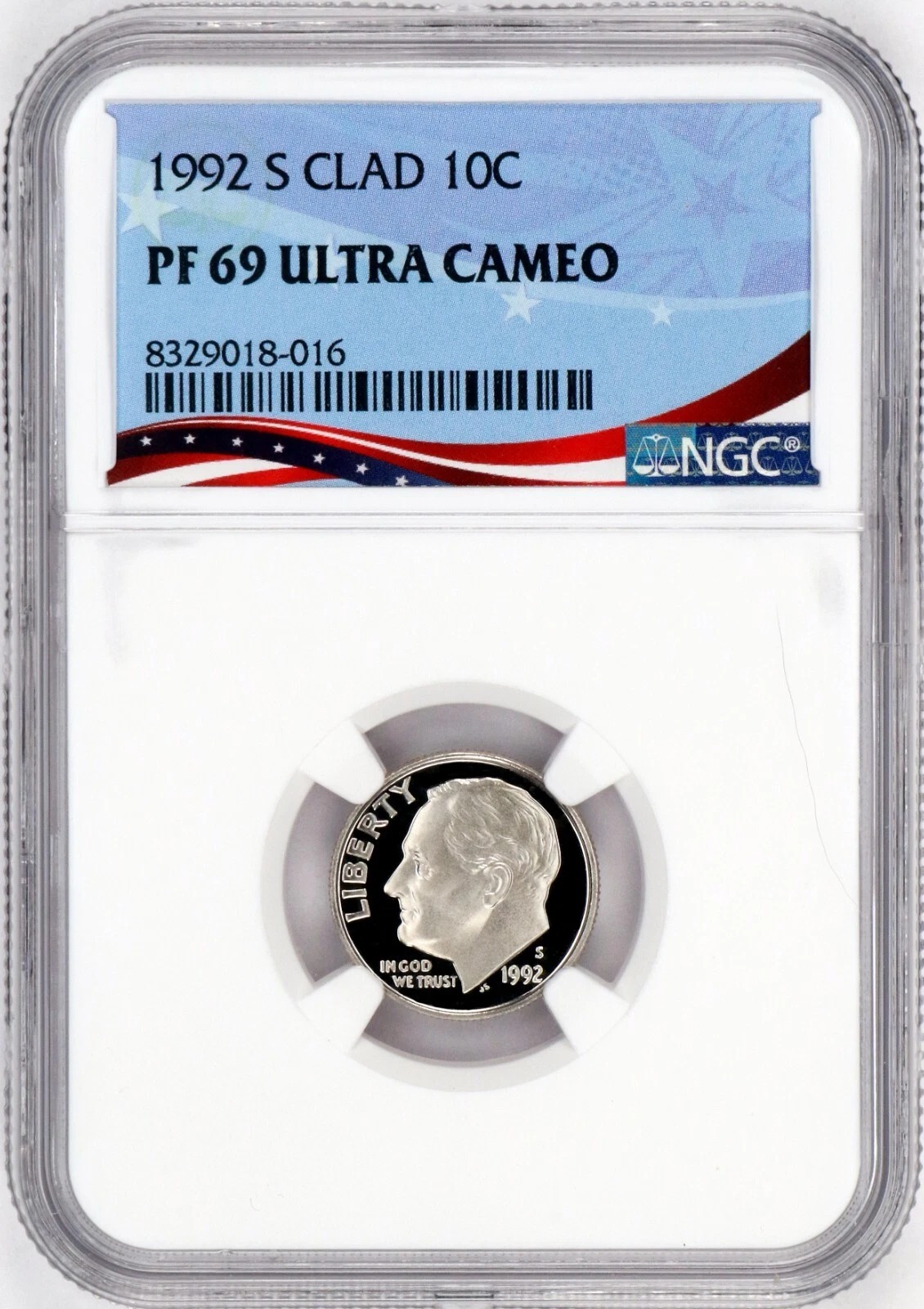 / 1992-S Proof Roosevelt Dime, Graded PF69UC NGC * OSR Patriotic Exclusive Label