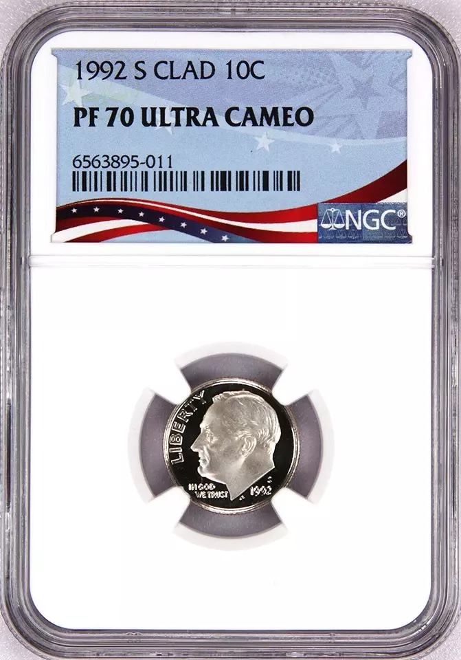 1992-S Proof Roosevelt Dime, Graded PF70UC NGC * OSR Patriotic Exclusive Label