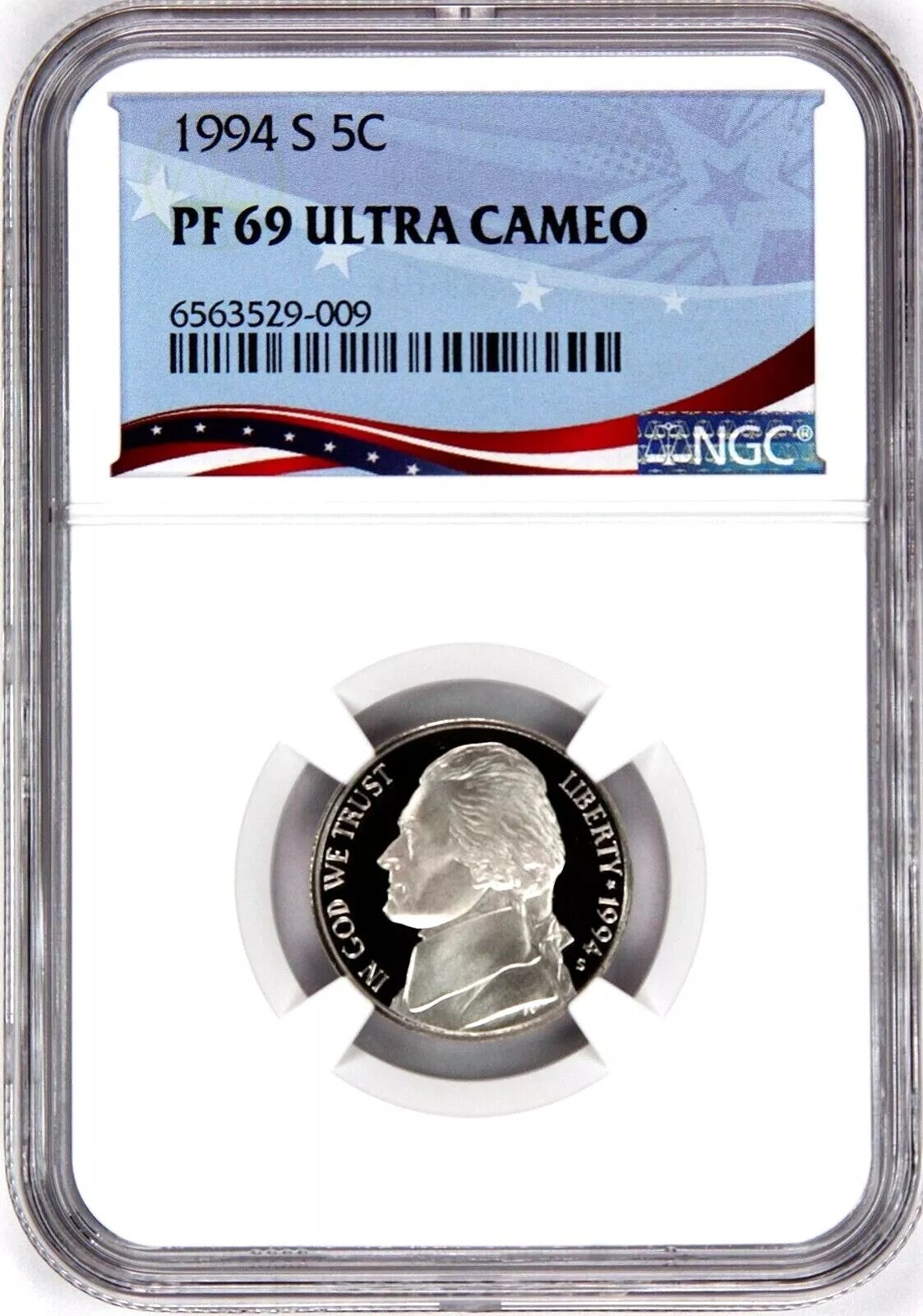 1994-S Proof Jefferson Nickel, Graded PF69UC NGC * OSR Sales Patriotic Label quantity