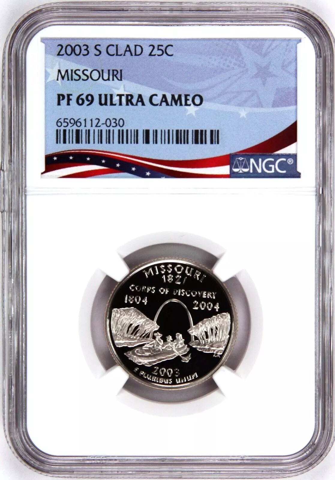 2003-S Proof State Quarter, Missouri, PF69 Ultra Cameo NGC, Patriotic Label quantity