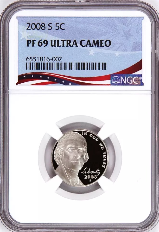 2008 S Proof Jefferson Nickel Graded PF69UC NGC OSR Sales Patriotic Label quantity