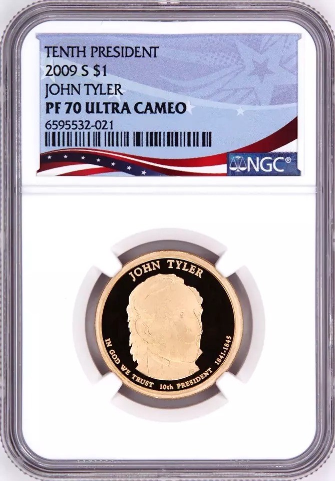 / 2009 S, $1 John Tyler, Graded PF 70 Ultra Cameo by NGC * Patriotic Label