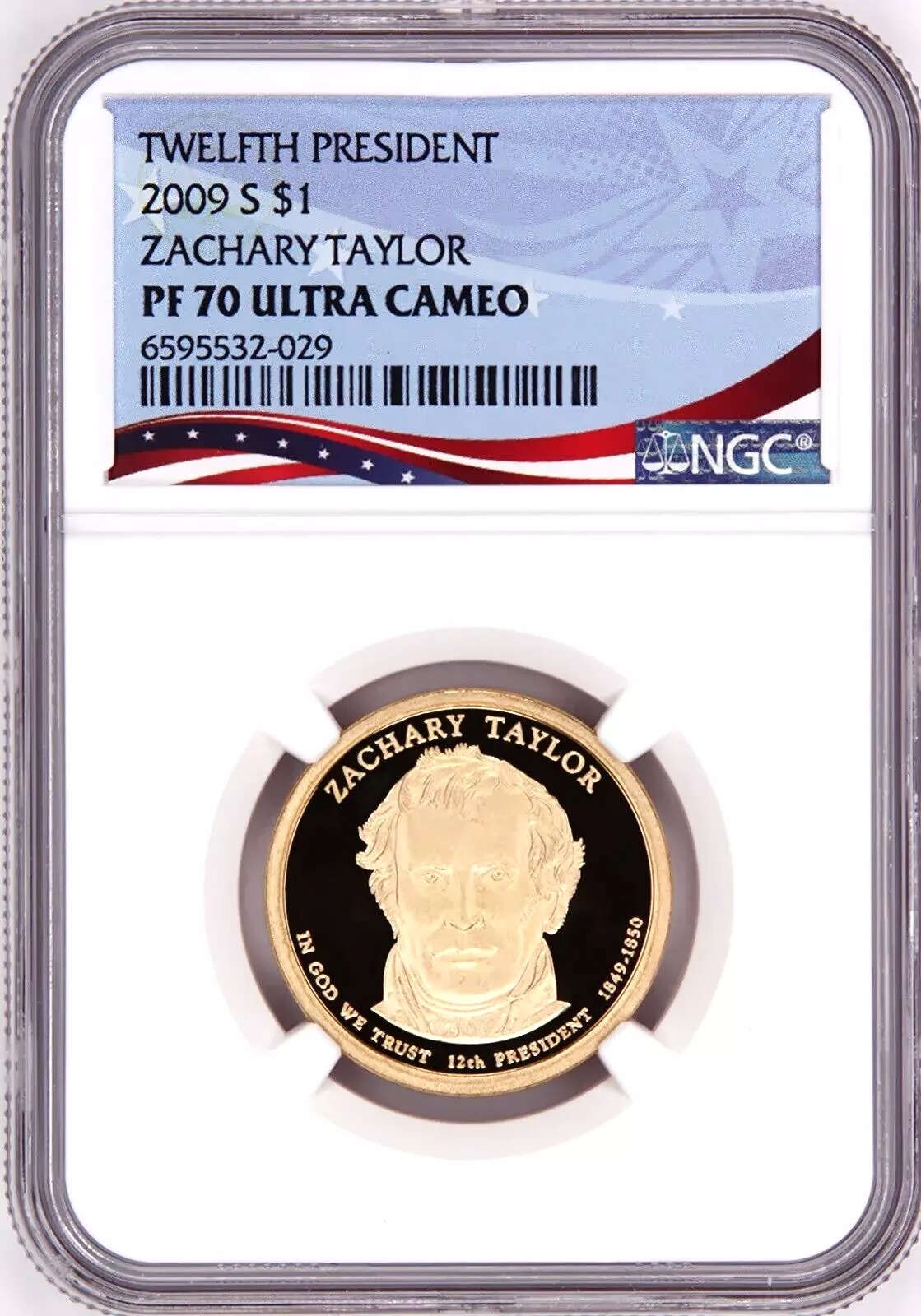 2009 S, $1 Zachary Taylor, Graded PF 70 Ultra Cameo by NGC * Patriotic Label