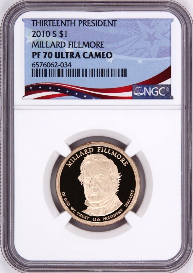 2010 S, $1 Millard Fillmore, Graded PF 70 Ultra Cameo by NGC * Patriotic Label quantity