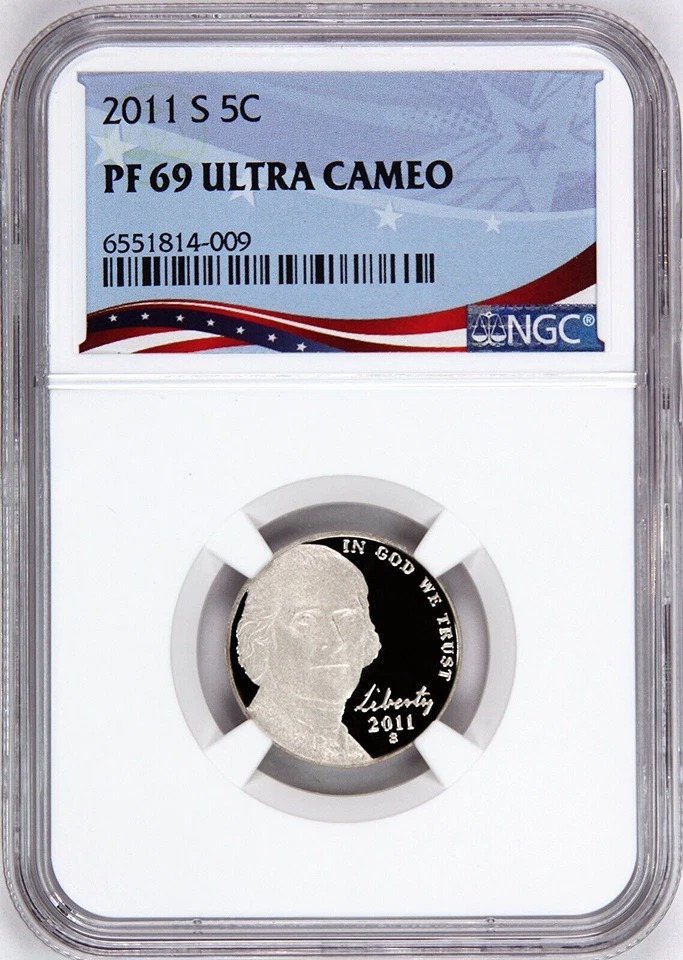 2011 S Proof Jefferson Nickel Graded PF69UC NGC OSR Sales Patriotic Label quantity
