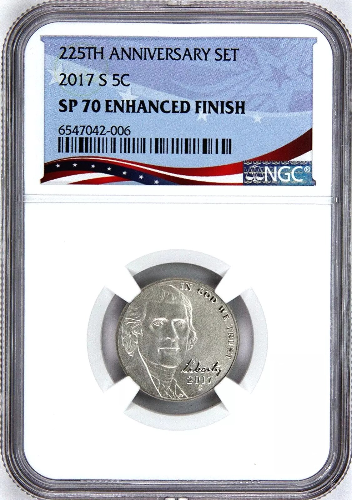 2017-S Jefferson Nickel NGC SP 70 Enhanced Finish ~ 225TH Anniversary Set
